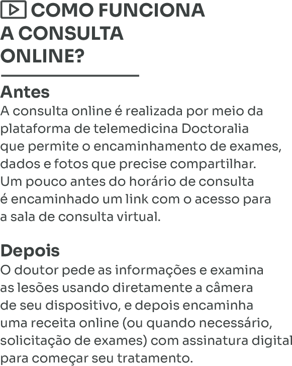 Além do tratamento de doenças de pele, realizamos procedimentos estéticos como: